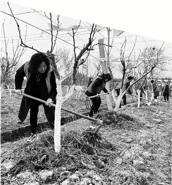 “舞阳大妈”银领志愿团的老同志们在春耕开犁现场植树。