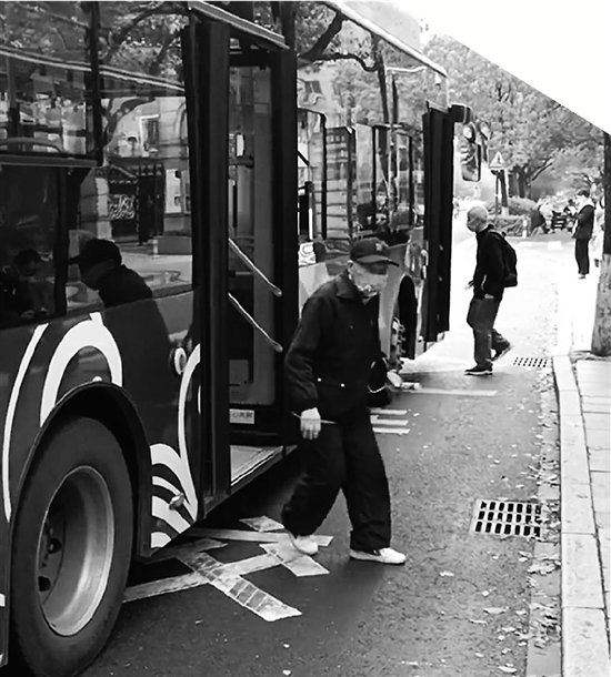 未靠近站台停车,老年人上下车有些吃力。