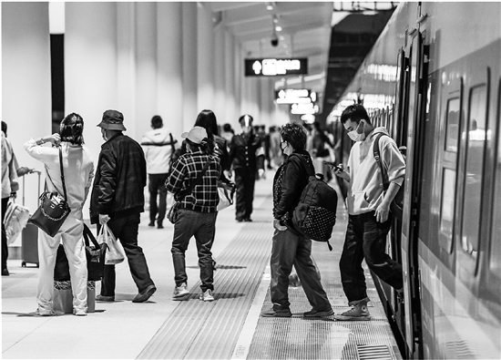 2月1日,中国铁路昆明局集团有限公司透露,中老铁路自2021年12月3日全线开通以来,“复兴号”“澜沧号”动车组运行安全、绿色、快捷、舒适,大幅缩短了沿线城市间时空距离,受到两国民众青睐,截至2023年1月31日,累计开行旅客列车2万列,发送旅客1030万人次。 图为1月14日,老挝旅客乘坐动车组列车抵达中国云南勐腊站。 据新华社 |