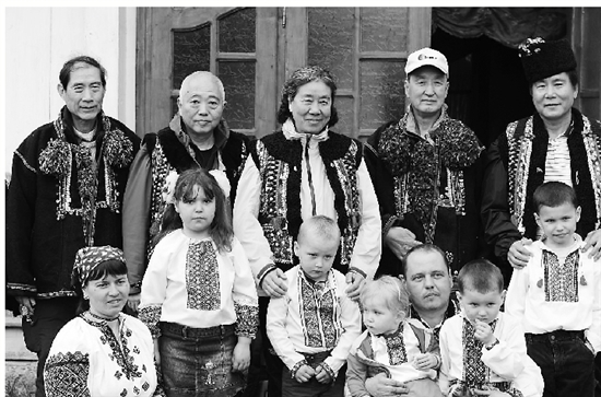 老跑摄影队(后排)在乌克兰与当地家庭合影。