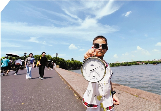 7月12日,杭州市气象台发布今年首个高温红色预警信号。图为当日午后的西湖景区,气温超过40℃。 里尔 摄