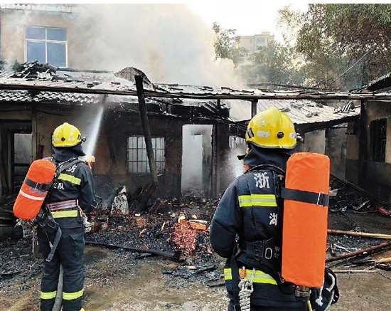 消防员救火现场。