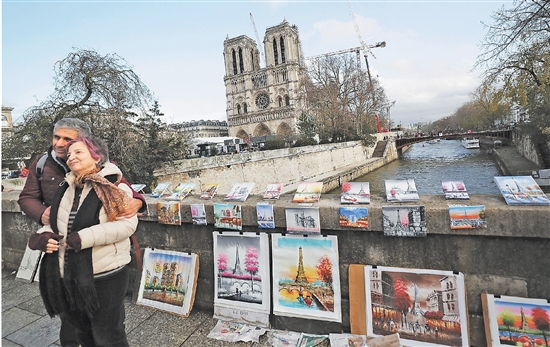 法国总统马克龙近日对媒体表示,2019年失火的巴黎圣母院将于2024年12月8日如期重新对宗教活动及公众开放。图为12月8日,人们在法国巴黎修复中的巴黎圣母院前合影。