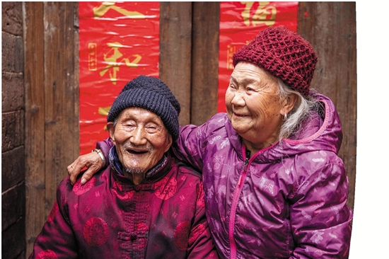 中图:103岁的胡开明(左)和95岁的妻子杨杏菊。