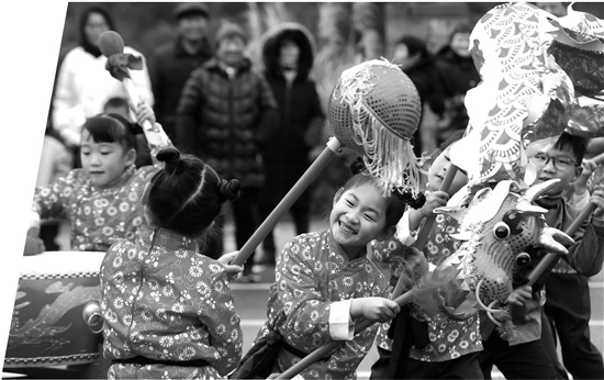 近日,一群天真活泼的小朋友在湖州市德清县下渚湖街道上杨村表演舞龙。