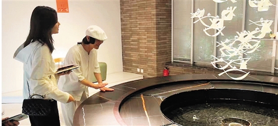 朱小杰为记者展示跳泉圆桌。 张文利 摄