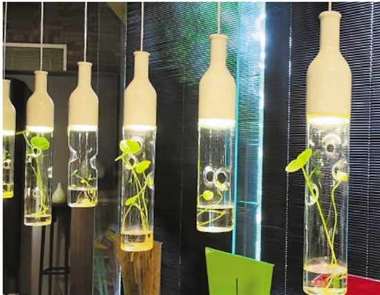 水培瓶吊灯可拆下当手电筒。 张文利 摄