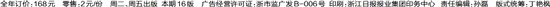 全年订价:168元 零售:2元/份 周二、周五出版 本期16版 广告经营许可证:浙市监广发B-006号 印刷:浙江日报报业集团印务中心