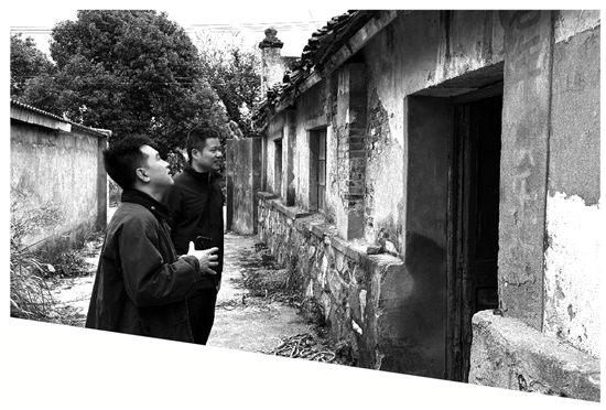叶海(右)查勘废弃房屋情况。