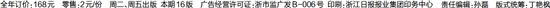 全年订价:168元 零售:2元/份 周二、周五出版 本期16版 广告经营许可证:浙市监广发B-006号 印刷:浙江日报报业集团印务中心