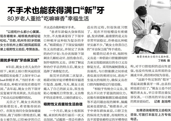 如需咨询吸附性义齿相关咨询,可拨打本版左上方专线电话。