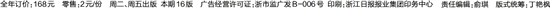 全年订价:168元 零售:2元/份 周二、周五出版 本期16版 广告经营许可证:浙市监广发B-006号 印刷:浙江日报报业集团印务中心