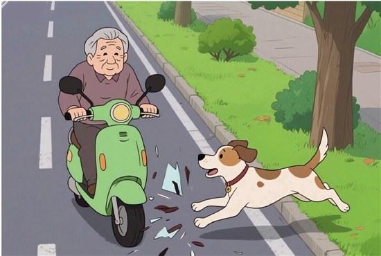未栓绳大狗冲向骑车老人