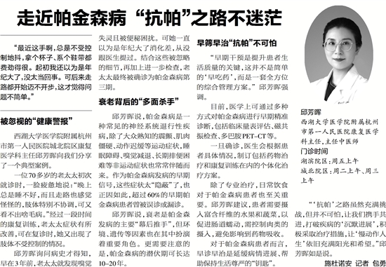 “‘抗帕’之路虽然充满挑战,但并不可怕,让我们携手共进,打破疾病的‘沉默进展’,积极采取治疗措施,让‘慢动作人生’依旧充满阳光和希望。”邱芳晖如是说。
