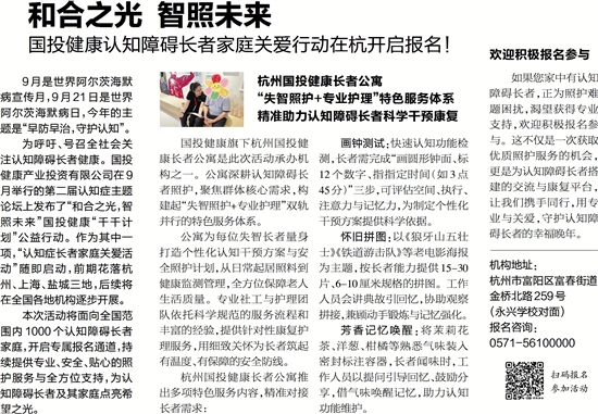 国投健康认知障碍长者家庭关爱行动在杭开启报名!