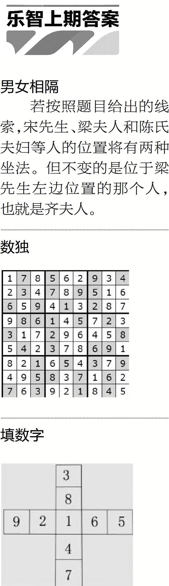 若按照题目给出的线索,宋先生、梁夫人和陈氏夫妇等人的位置将有两种坐法。但不变的是位于梁先生左边位置的那个人,也就是齐夫人。