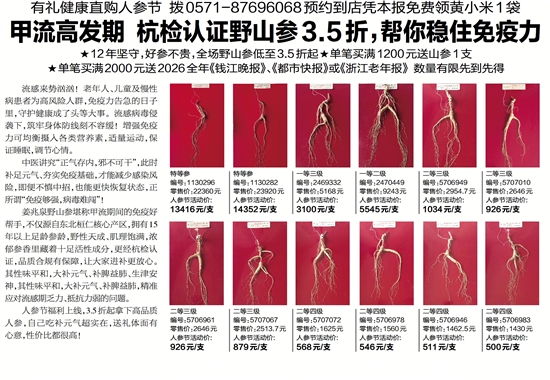 甲流高发期 杭检认证野山参3.5折,帮你稳住免疫力