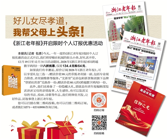 12月19日至12月31日活动期间,2026年《浙江老年报》和《跨越数字鸿沟》一律八折优惠,仅需134.4元和64元。
