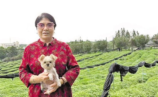 刘女士和爱犬在自己年轻时工作的茶园合影。受访者供图