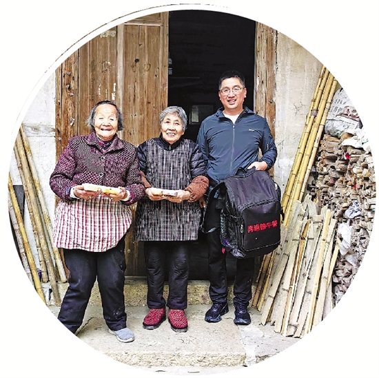 志愿者将午餐送到老人手中。受访者供图