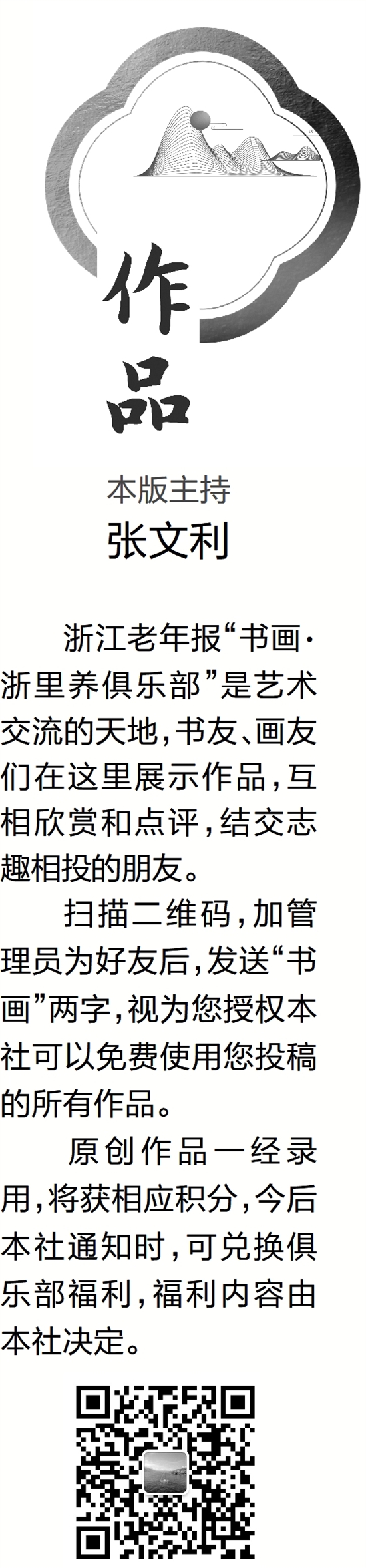 浙江老年报“书画·浙里养俱乐部”是艺术交流的天地,书友、画友们在这里展示作品,互相欣赏和点评,结交志趣相投的朋友。
