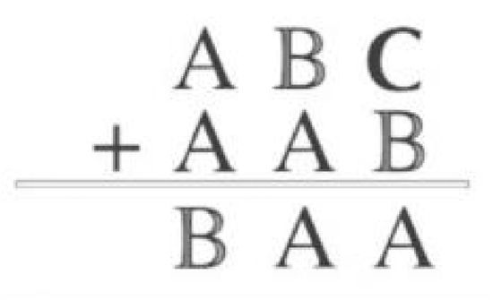 下图是一个数字哑谜。目前只知道B比C的两倍小,而且都不等于0,那么A、B和C的数值分别是多少?